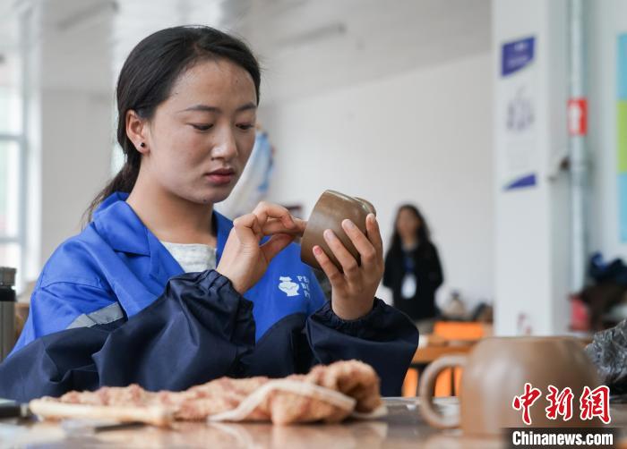 7月18日,在班瑪黑陶培訓及體驗中心,學員正在打磨班瑪黑陶。中新社記者 馬銘言 攝