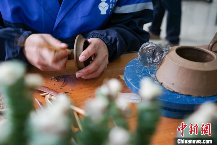 7月18日,在班瑪黑陶培訓及體驗中心,學員正在捏制班瑪黑陶。中新社記者 馬銘言 攝