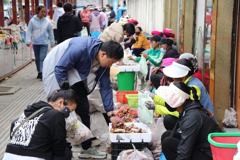 眼下正是野生菌上市時節(jié),記者在香格里拉市城區(qū)各大菜市場看到,銅綠菌、一窩菌、雞油菌、老人頭等野生菌均已上市,種類繁多、價格公道,深受消費者喜愛。