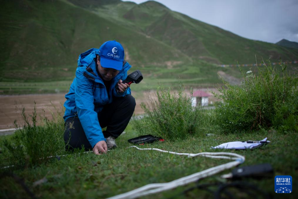 7月20日,在直門達水文站,長江科學(xué)院水土保持研究所任斐鵬在進行植被生態(tài)和水土流失調(diào)查。新華社記者 伍志尊 攝