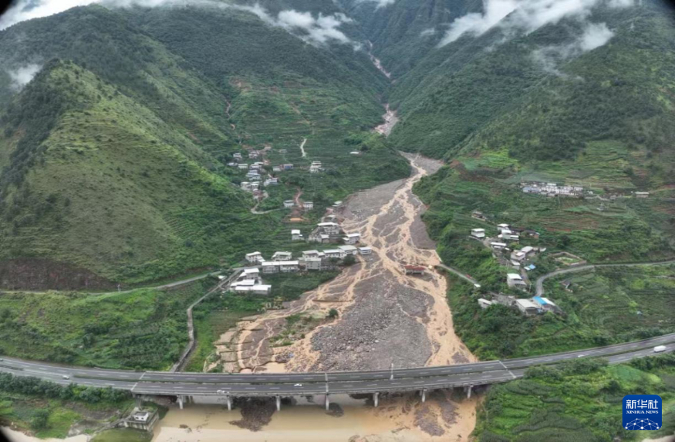 這是7月18日0時(shí)12分發(fā)生在雅安市漢源縣小堡藏族彝族鄉(xiāng)團(tuán)結(jié)村的泥石流全貌。新華社發(fā)
