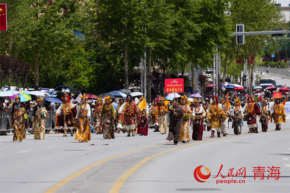 走在巡演方隊中的非遺傳承人。人民網記者 甘海瓊 攝