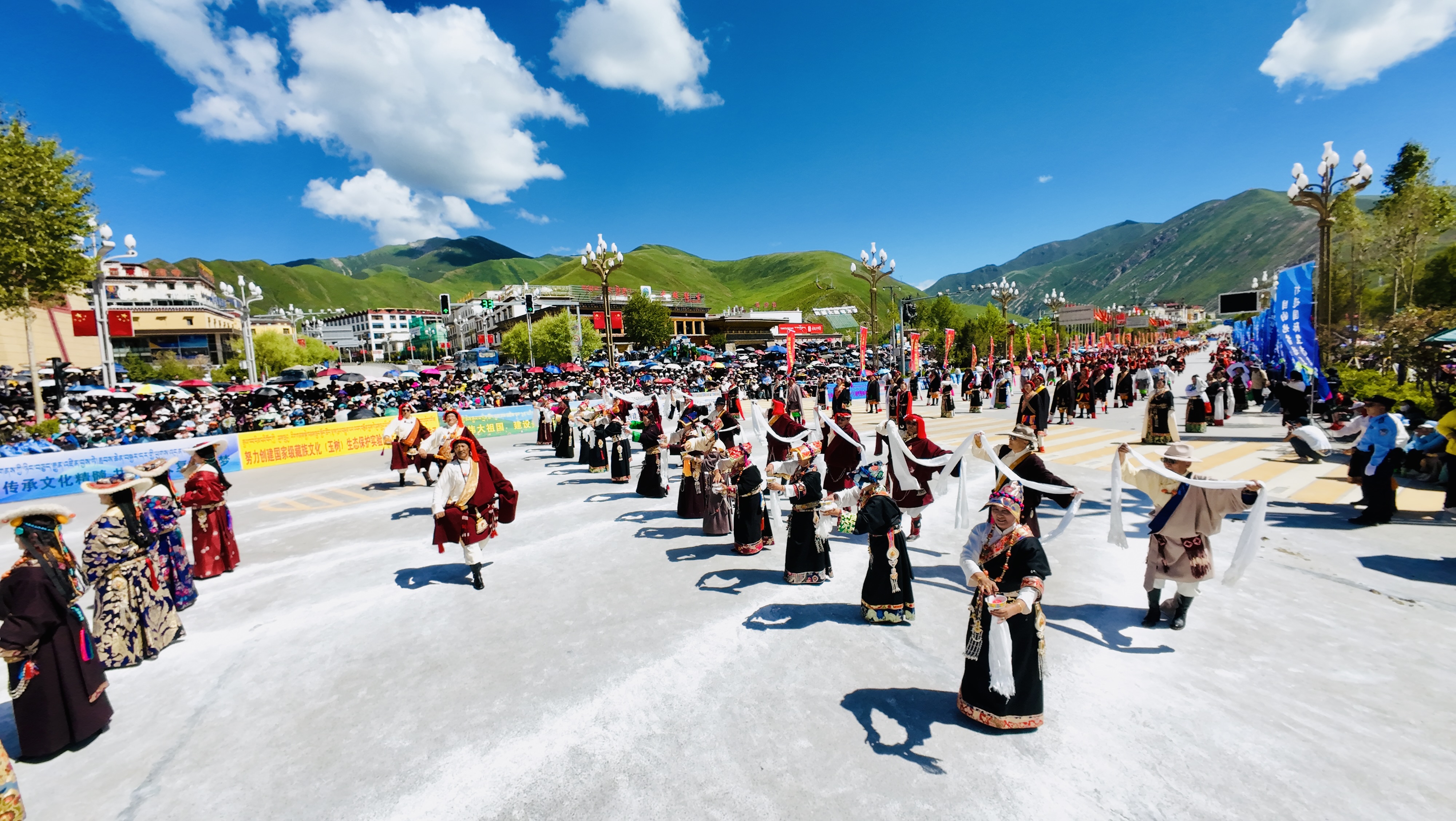 湛藍的天空映襯著高原的江河,潔白的雪山滋養(yǎng)無垠的牧場,又是一年高山流水縈繞著牧歌的時節(jié)。7月24日,一場行走的非遺展在青海省玉樹藏族自治州玉樹市街頭上演?!盀t灑的康巴人”——國家級藏族文化(玉樹)生態(tài)保護實驗區(qū)建設成果非遺巡演現場,瀟灑多彩的玉樹民族民俗文化在此呈現。