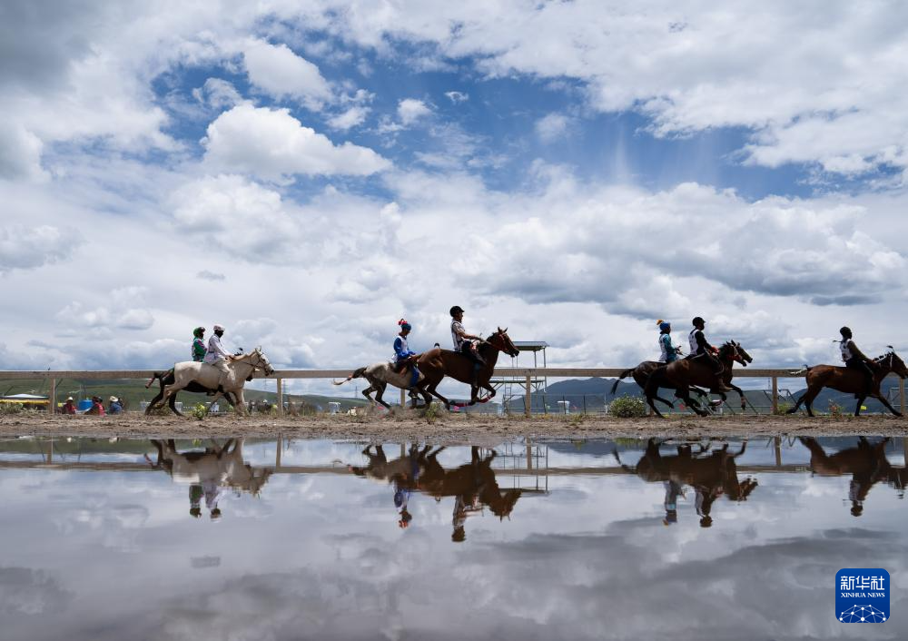 7月30日,四川省甘孜藏族自治州理塘“八一”賽馬會在多旺塘賽馬場啟幕,來自全縣各鄉(xiāng)鎮(zhèn)近千名牧民匯聚一堂。賽馬會上表演的拾哈達(dá)、馬上射擊、馬上射箭、鐙里藏身、五彩凌空等馬術(shù)絕技,讓當(dāng)?shù)啬撩窈陀慰拖硎芰艘粓鲆曈X盛宴。