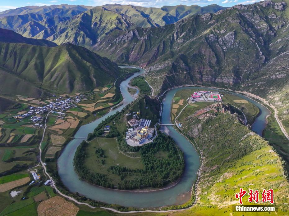 青海省玉樹藏族自治州囊謙縣地處青海省最南端、三江源腹地,瀾滄江上游五條支流貫穿全境,在該縣毛莊鄉(xiāng),瀾滄江東源孜曲蜿蜒而下,古老的尕丁寺被孜曲包圍,成為當(dāng)?shù)鬲毺仫L(fēng)景。