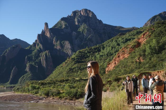 圖為中外文旅達人在瀾滄江上游的河谷中拍照打卡。馬銘言 攝
