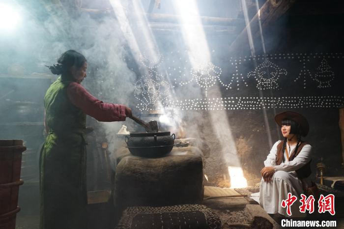 在囊謙縣娘拉鄉(xiāng)的藏式古堡內(nèi),旅游達人們走進擁有百余年歷史的藏族人家,與女主人一起體驗生火、熬煮奶茶。