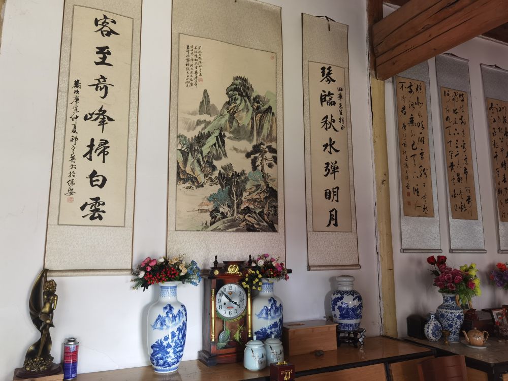 61歲土族退休教師田華的家,已有百年歷史。這所老宅完整保留了青海河湟地區(qū)農(nóng)村莊廓院的傳統(tǒng):四合院內(nèi)四面靠墻建房,庭院中花木繁茂;正房?jī)?nèi)墻上掛有古訓(xùn)字畫,條幾上置古瓶、鏡架和銅制供器,古色古香,頗有耕讀傳家遺風(fēng)。