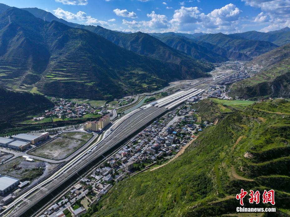 圖為川青鐵路鎮(zhèn)江關至黃勝關段鎮(zhèn)江關站。(無人機照片)中新社記者 劉忠俊 攝