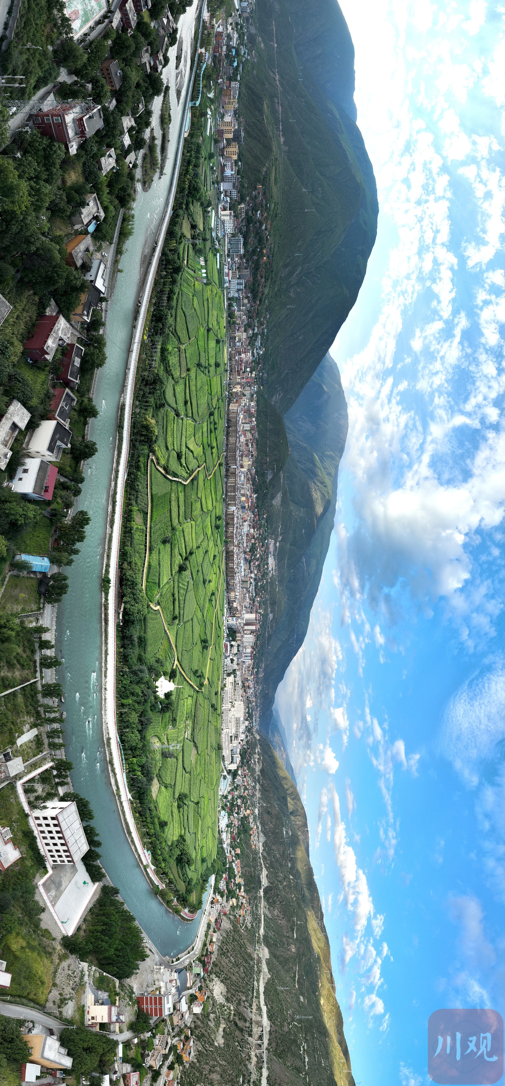 巴塘縣城與田園棧道美景同框