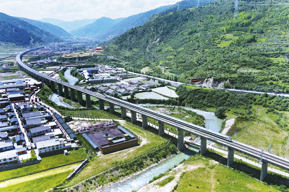 試運行列車在川青鐵路鎮(zhèn)江關至黃勝關段開行。成蘭鐵路公司供圖
