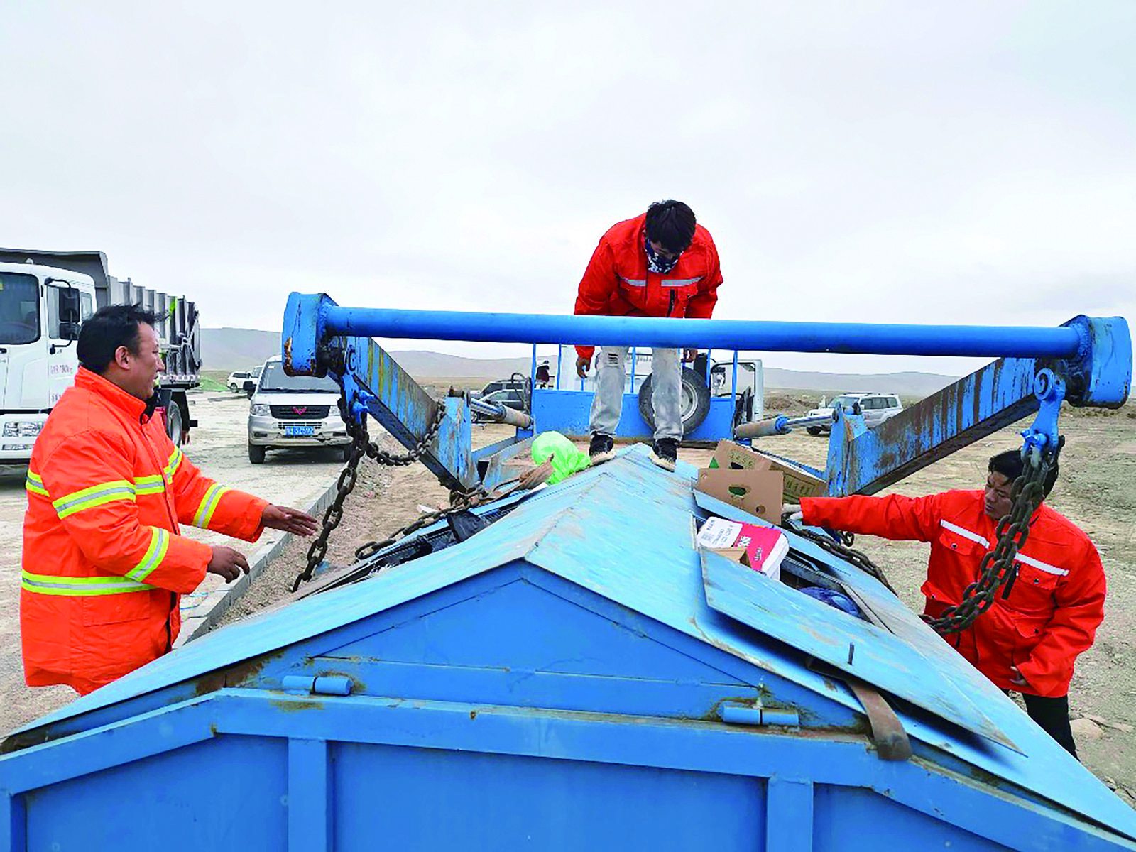 扎西達(dá)杰和同伴正在清運(yùn)垃圾。公保安加 攝