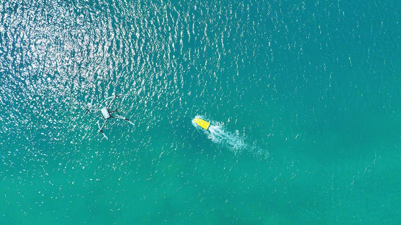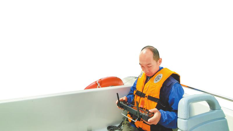 無人船與無人機(jī)相互配合,對(duì)九寨溝內(nèi)這個(gè)最大、最深的高山湖泊進(jìn)行水下、水上同步測(cè)量。韋維 攝