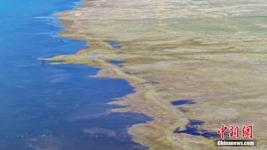 9月26日,航拍青海省海北藏族自治州剛察縣仙女灣秋日風(fēng)光。仙女灣位于青海湖北岸,是青海湖重要高原草甸濕地,生物多樣性豐富。圖為航拍青海省海北藏族自治州剛察縣仙女灣。中新社記者 薛蒂 攝