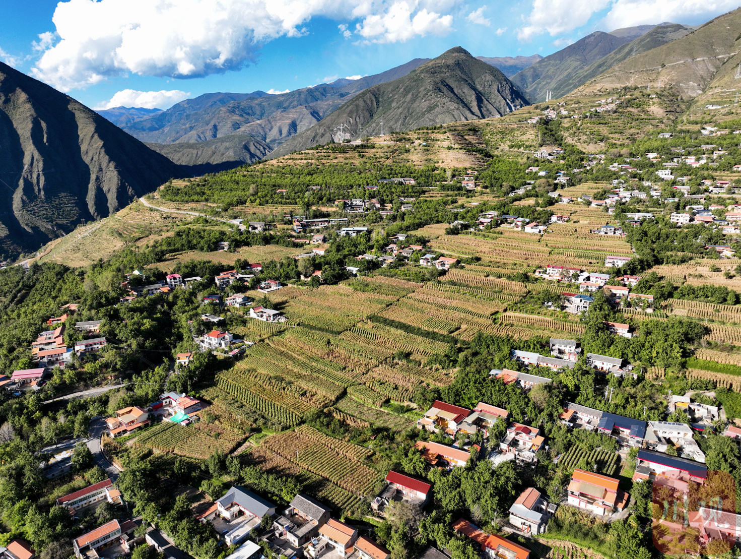 10月8日下午,四川省阿壩藏族羌族自治州金川縣咯爾鄉(xiāng)復興村展現(xiàn)出了一幅令人心曠神怡的美景。夕陽余暉灑落,色彩斑斕的民居在山坡上錯落有致地排列,宛如一顆顆璀璨的明珠。與民居交相輝映的是漫山遍野的梨樹,它們在微風中輕輕搖曳,訴說著豐收的喜悅。整個村莊被金色的陽光籠罩,構(gòu)成了一幅美麗鄉(xiāng)村的新畫卷,讓人流連忘返。
