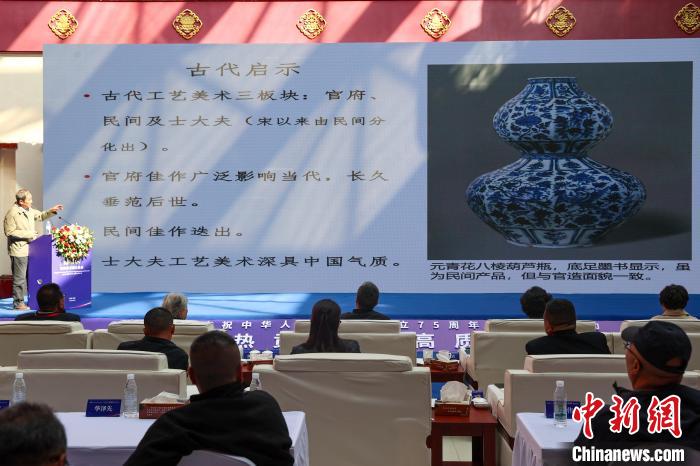 圖為臺(tái)灣世界宗教博物館榮譽(yù)館長(zhǎng)陳國(guó)寧交流發(fā)言。中新社記者 薛蒂 攝