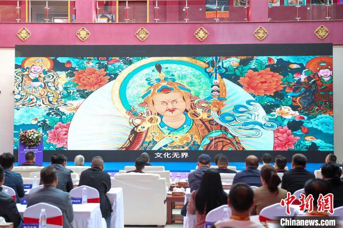 圖為交流會(huì)播放熱貢藝術(shù)宣傳片。中新社記者 薛蒂 攝