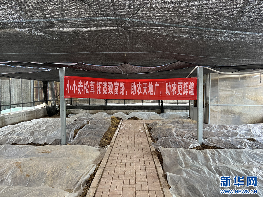 隆亞村高原有機(jī)赤松茸種植大棚一角。新華網(wǎng) 魚(yú)昊 攝