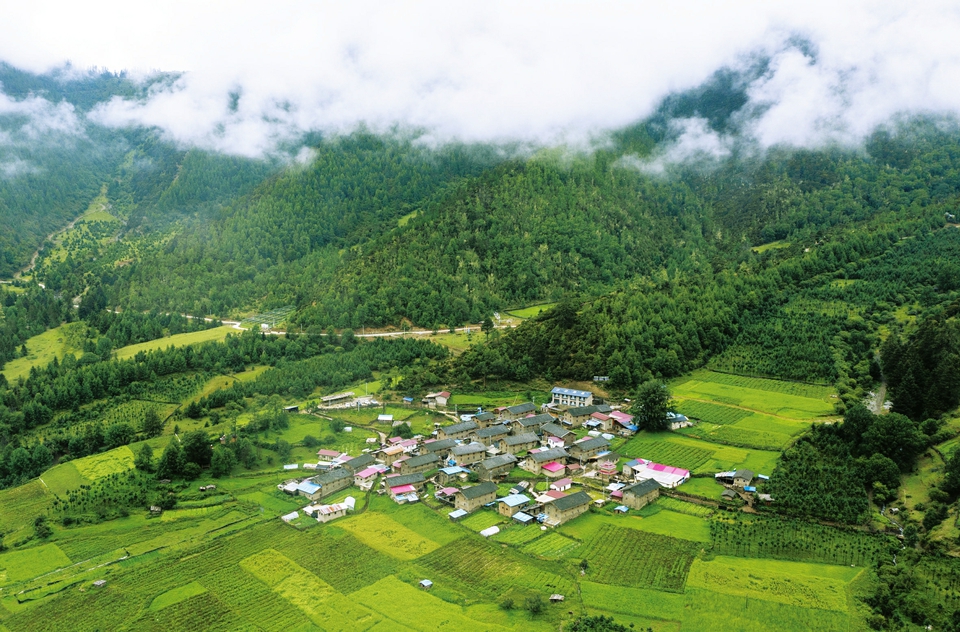 汽車駛過木里縣的各個(gè)村落,山高谷深,長(zhǎng)松秀林,汩汩滔滔,隨處可見“綠水青山就是金山銀山”“護(hù)林愛林”的標(biāo)語(yǔ)。在藏語(yǔ)里,“木里”的意思是美麗、遼闊、深遠(yuǎn),參天幽密的原始森林帶給當(dāng)?shù)厝讼M推谂巍?/p>