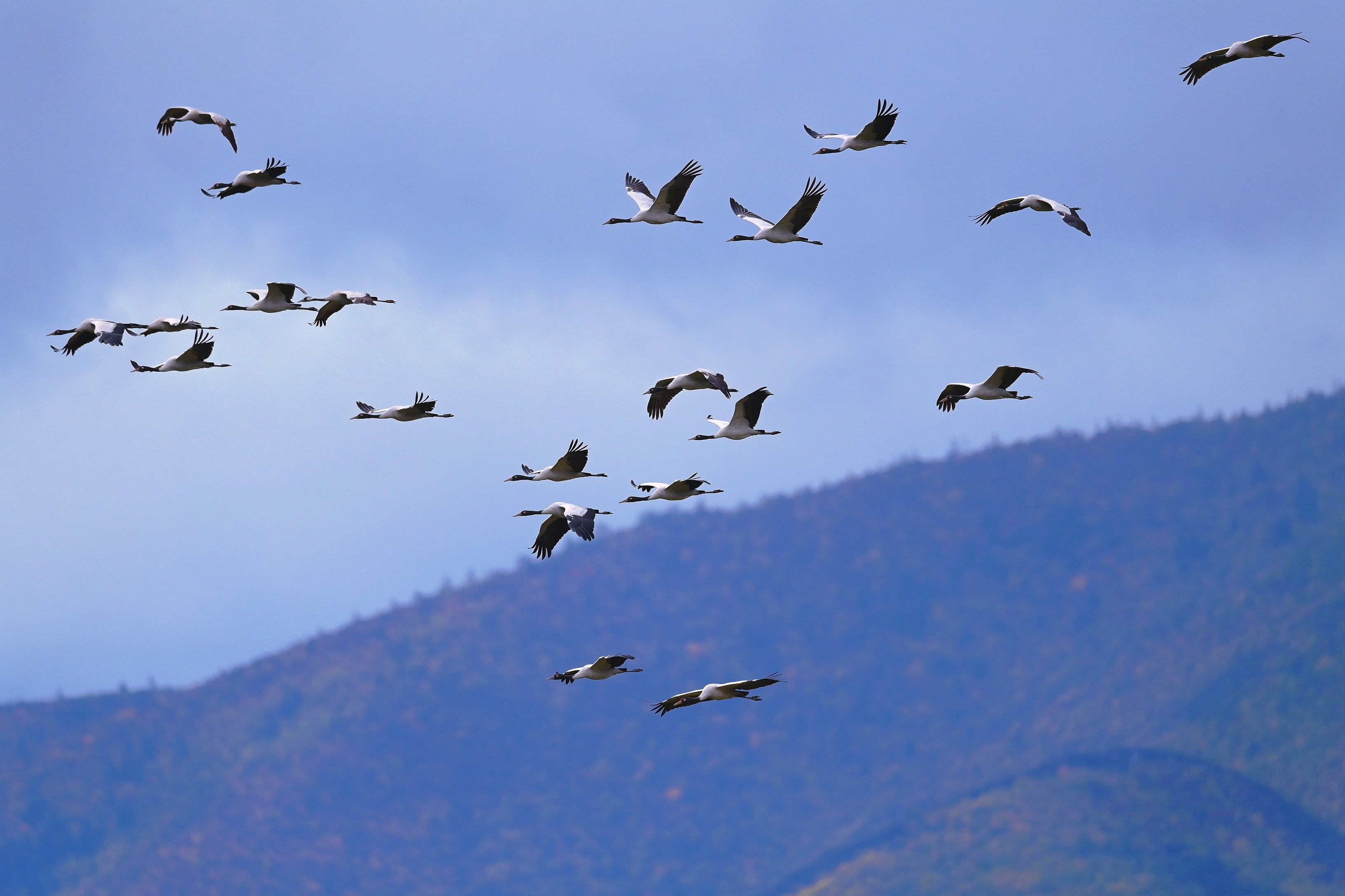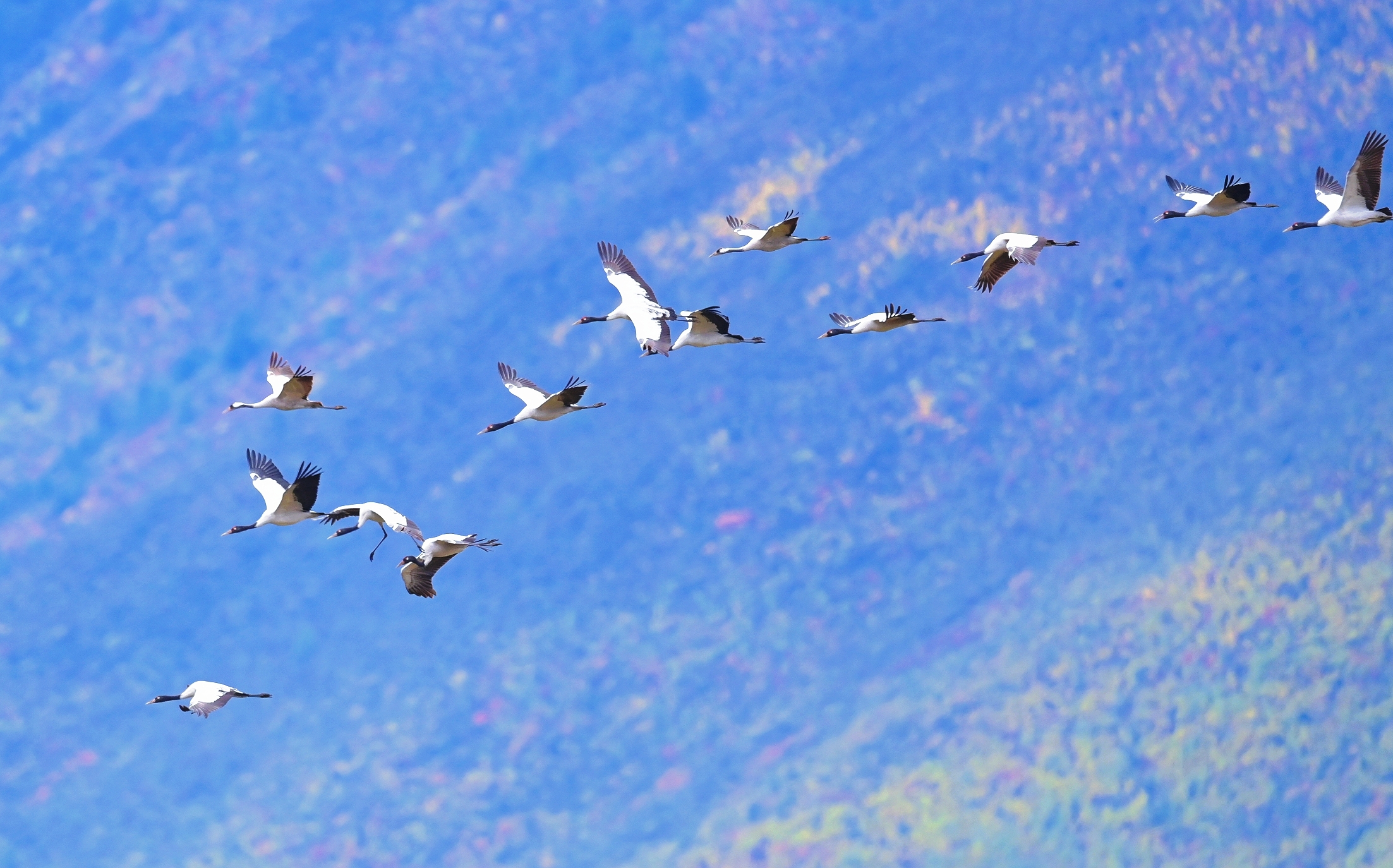 近日,香格里拉市納帕海省級(jí)自然保護(hù)區(qū)管護(hù)局工作人員監(jiān)測(cè)發(fā)現(xiàn),今年首批越冬黑頸鶴已飛抵納帕海。工作人員共監(jiān)測(cè)到黑頸鶴34只,其中幼鳥4只,與黑頸鶴同期飛抵的還有灰鶴2只,黑鸛61只。