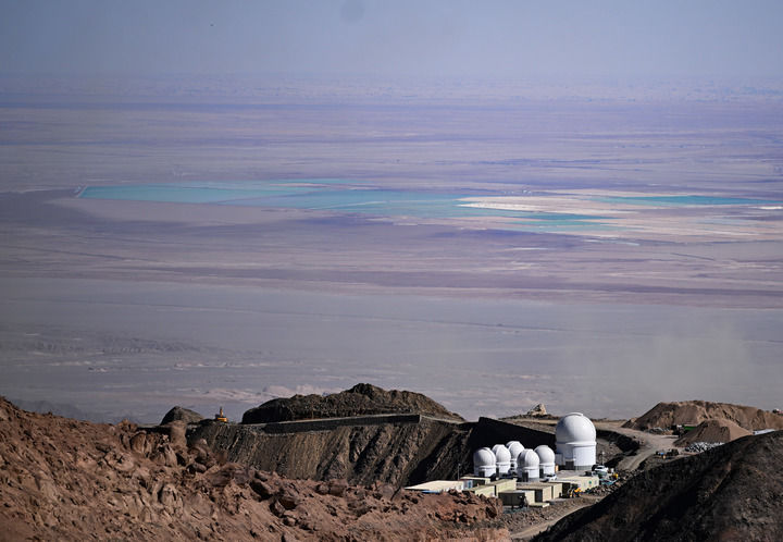 這是4月20日在冷湖鎮(zhèn)賽什騰山拍攝的南京大學實施的時域天文臺TIDO項目。本組圖片均由新華社記者 張龍 攝