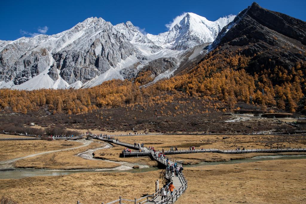 游客在四川省甘孜藏族自治州的稻城亞丁景區(qū)游覽。 新華社記者 儲加音 攝