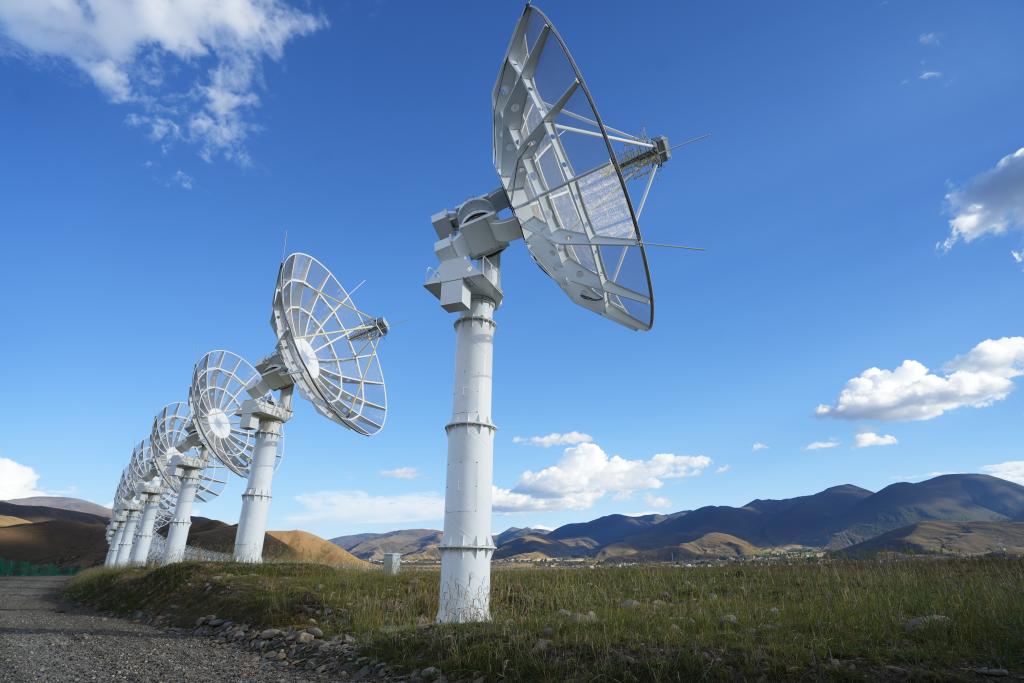 沿著227國道繼續(xù)向前,距離“拉索”50公里的稻城縣噶通鎮(zhèn),國家重大科技基礎(chǔ)設(shè)施“空間環(huán)境地基綜合監(jiān)測網(wǎng)”(子午工程二期)標(biāo)志性設(shè)備之一——圓環(huán)陣太陽射電成像望遠(yuǎn)鏡矗立在一片開闊的草場上。313臺直徑6米、形似蒲公英的天線均勻分布于直徑1公里的巨大圓環(huán)上,氣勢恢宏,當(dāng)?shù)鼐用裼H切地稱之為 “千眼天珠”。