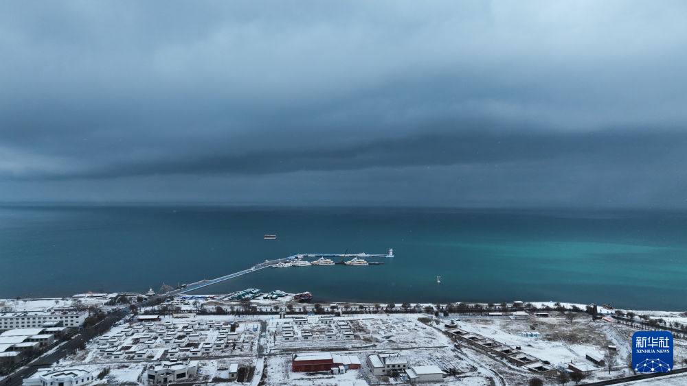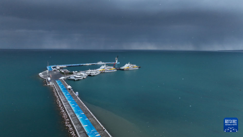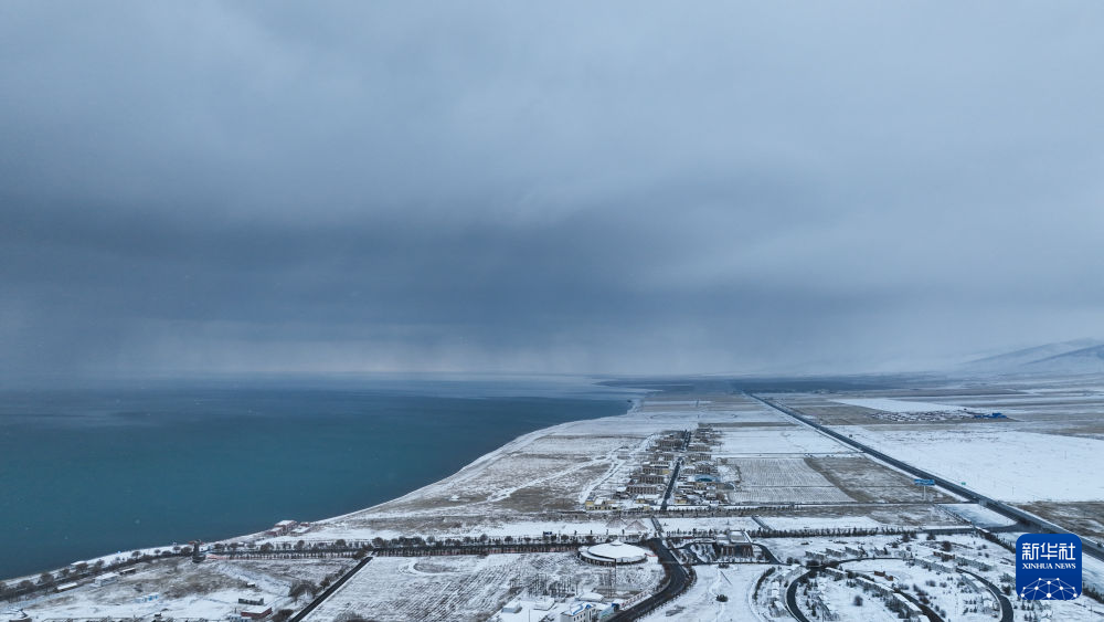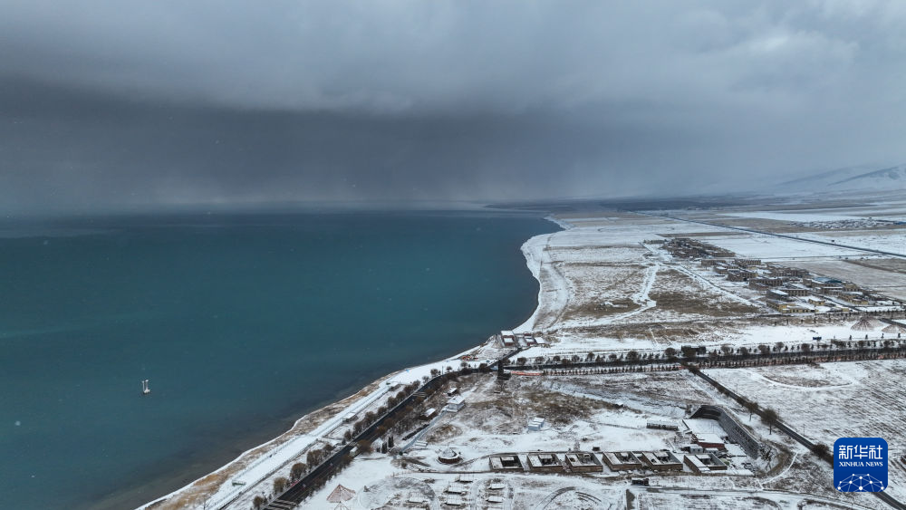 11月18日,青海省青海湖迎來降雪天氣。