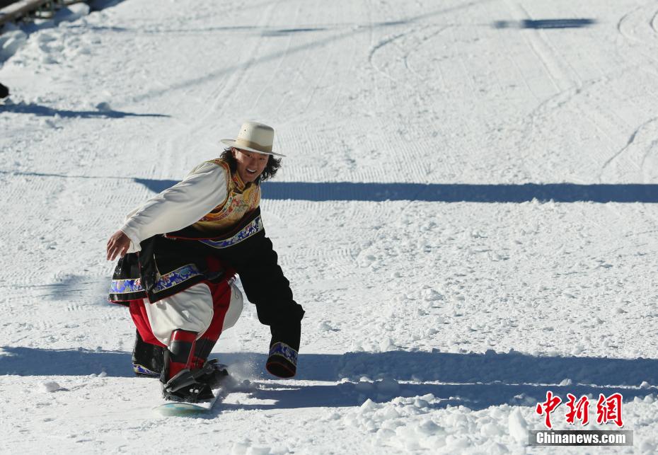 12月24日,藏族小伙在香格里拉體驗(yàn)滑雪。地處云南西北部的迪慶藏族自治州香格里拉市,是云南熱門旅游地,也是世人向往的世外桃源。近年來(lái),該州圍繞“冬看日照金山嬉雪觀鳥”的主題,不斷豐富業(yè)態(tài)服務(wù)好游客,推動(dòng)冰雪世界“冷資源”變?yōu)椤盁峤?jīng)濟(jì)”。中新社記者 黃興鴻 攝