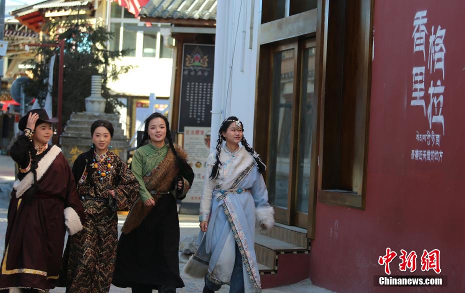 12月23日,游客身著藏裝游覽獨(dú)克宗古城。地處云南西北部的迪慶藏族自治州香格里拉市,是云南熱門旅游地,也是世人向往的世外桃源。近年來(lái),該州圍繞“冬看日照金山嬉雪觀鳥”的主題,不斷豐富業(yè)態(tài)服務(wù)好游客,推動(dòng)冰雪世界“冷資源”變?yōu)椤盁峤?jīng)濟(jì)”。中新社記者 黃興鴻 攝