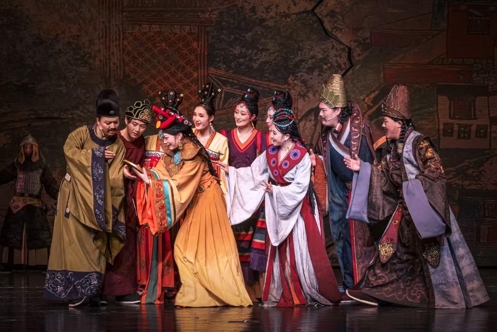 舞臺(tái)上,《金城公主》以精湛的表演和細(xì)膩的情感刻畫(huà),將一段具有歷史深邃感的唐蕃和盟故事娓娓道來(lái)?!拔业闹饕繕?biāo)是盡可能地學(xué)習(xí)民間藏戲,深入了解傳統(tǒng)的演唱風(fēng)格和發(fā)聲方法,為創(chuàng)新表演方式打下基礎(chǔ)。”41歲的藏戲演員仁青東智在劇中扮演唐中宗,他是西藏大學(xué)聲樂(lè)系研究生,在校時(shí)學(xué)習(xí)意大利美聲唱法,畢業(yè)后在藏戲中找到了自己的熱愛(ài)。