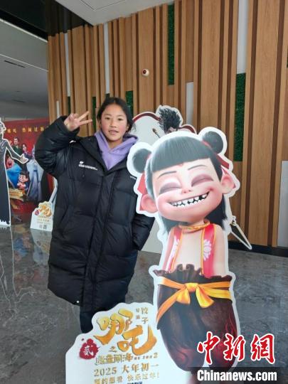 拉尕在杭州富陽(yáng)觀(guān)賞熱映電影《哪吒2》。受訪(fǎng)者 供圖