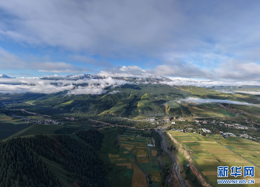 航拍祁連縣城。新華網(wǎng) 仁青多杰 攝