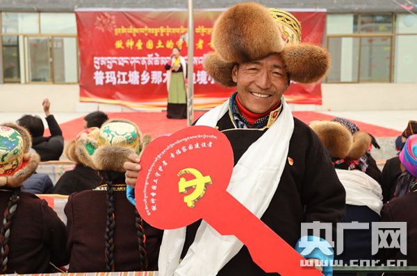 群眾領(lǐng)到邊境小康村新居的“金鑰匙”(央廣網(wǎng)發(fā) 浪卡子縣縣委宣傳部供圖)
