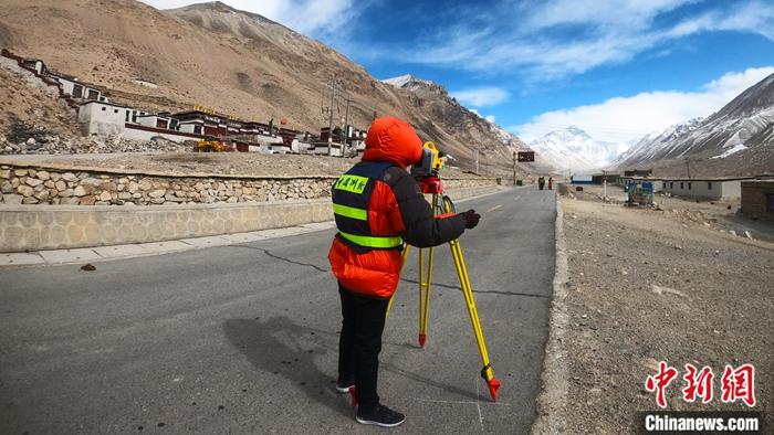圖為4月3日,在西藏日喀則市定日縣,國測一大隊精密水準測量工作即將推進至珠穆朗瑪國家公園。 中新社發(fā) 魏軍輝 攝