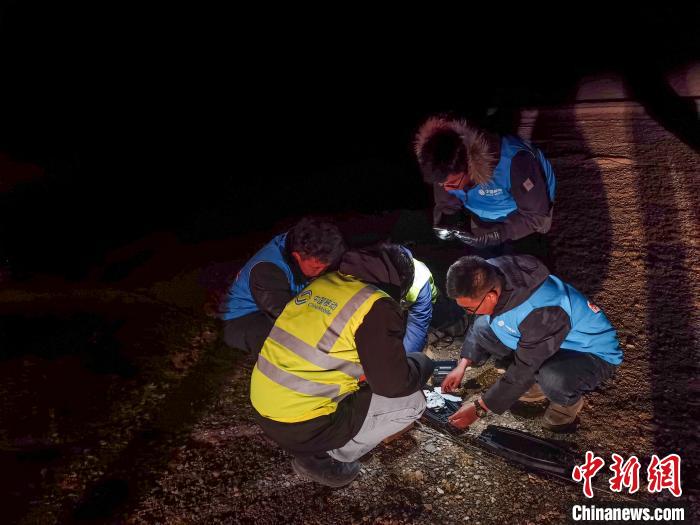 11月15日晚,在雙湖縣嘎措鄉(xiāng),益江與同事?lián)屝尥ㄐ殴饫|。李瑞偉 攝