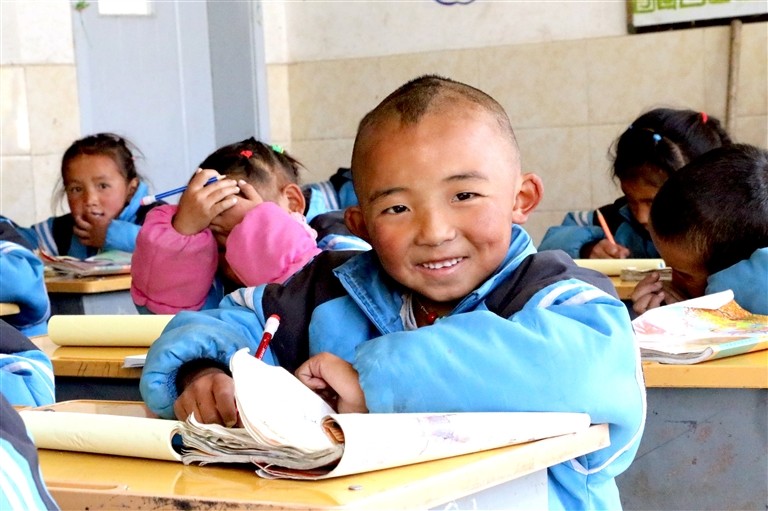 強就的兒子在寬敞明亮的教室里學(xué)習(xí)。