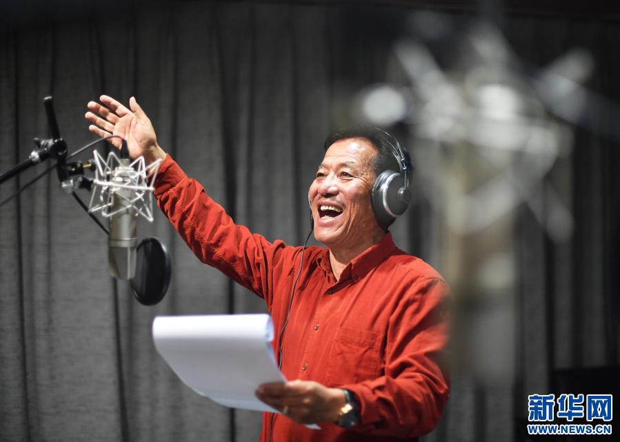 在中國西藏廣播電影電視藏語節(jié)目譯制中心,配音演員倫珠巴桑正在給藏語節(jié)目配音(2019年3月6日攝)。新華社記者普布扎西 攝
