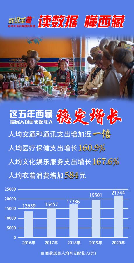 “十三五”期間,在中央和地方一系列政策措施的推動下,西藏居民收入持續(xù)攀升。西藏自治區(qū)政府統(tǒng)計(jì)數(shù)據(jù)顯示,2020年西藏居民人均可支配收入達(dá)21744元,較2015年增長77.4%。