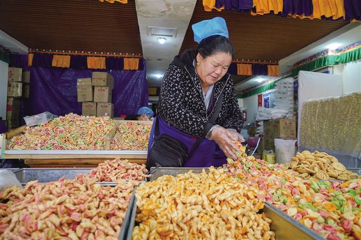 如今生活越來越便利,很多人都會選擇在市場直接購買現(xiàn)成的卡塞與德卡等年貨,除了“尼珍藏式咔噻店”等位于宗角祿康公園北門公交站與拉薩中學(xué)附近街面上的卡塞店,城東德卡卡塞店也是不錯的選擇。