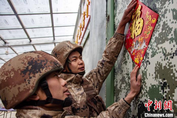 執(zhí)勤點上的官兵們,用“?!弊?、中國結將保溫方艙精心點綴裝飾,把祝福和期許默默留在心間?!耙患也粓A,萬家團圓?!瘪R雪建是官兵中唯一的零零后戰(zhàn)士,他表示:“一身戎裝接過送來的‘?!?,便是扛下了肩上的使命與責任,戰(zhàn)位上的新年就是邊關軍人的守望?!?/p>