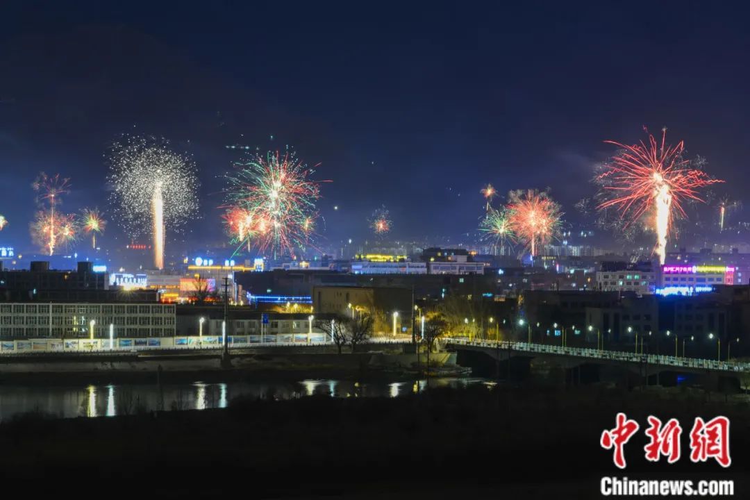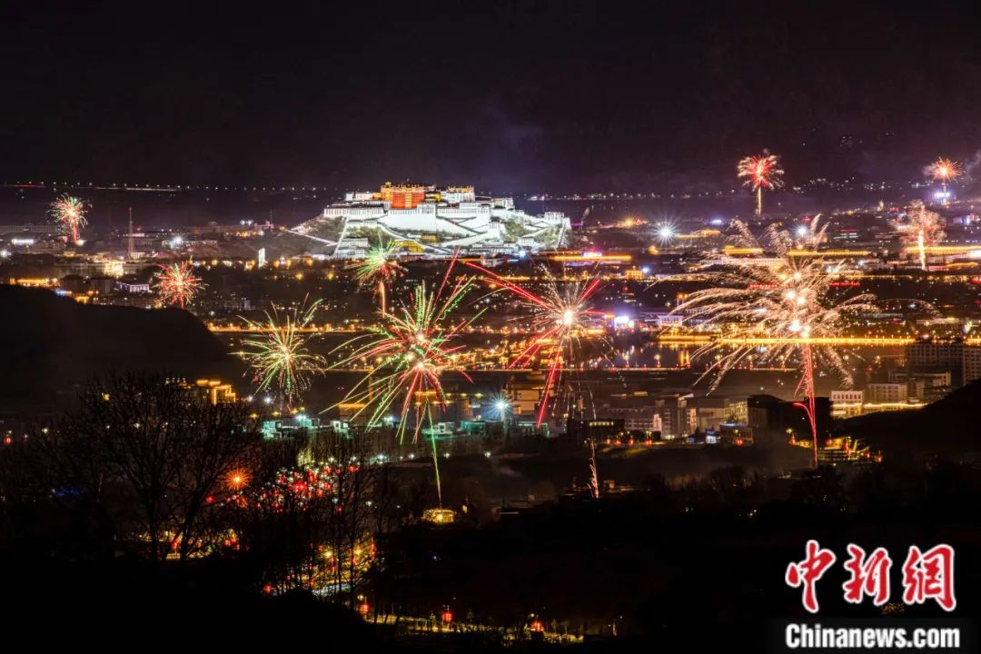 2月10日晚,拉薩古突夜,全城煙花璀璨。何蓬磊 攝
