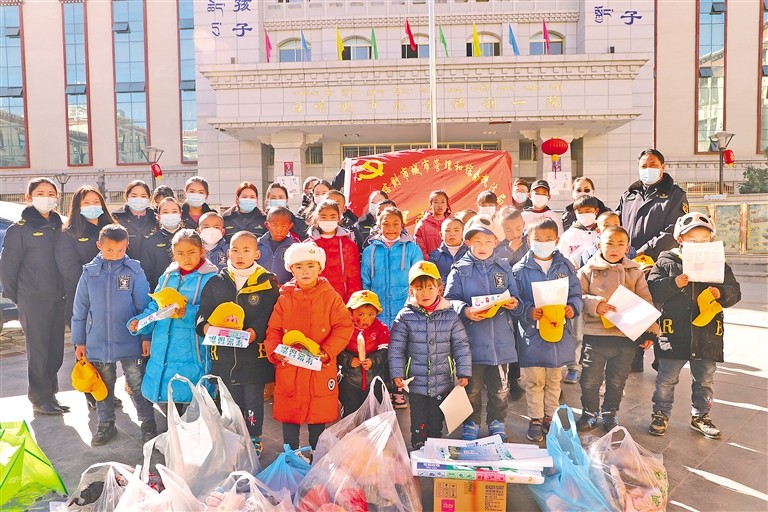 圖為日喀則市城市管理局干部職工前往兒童福利院開展看望慰問活動后合影留念。扎西頓珠 攝
