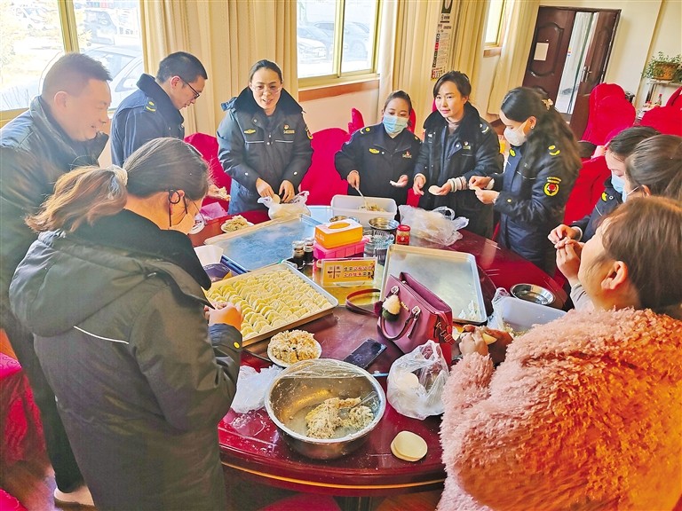 圖為日喀則市城市管理局干部職工圍坐一起包餃子歡度除夕夜。扎西頓珠 攝