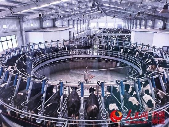 下午5點,正是擠奶時間。養(yǎng)殖場早就拋棄傳統(tǒng)人工擠奶,取而代之的是現(xiàn)代化操作車間。全自動轉(zhuǎn)盤式擠奶設(shè)備,運用全自動糞污處理系統(tǒng)對奶牛的糞尿進行減量化、無害化、資源化處理,形成了“奶牛養(yǎng)殖—沼液還田—飼草種植”的綠色循環(huán)養(yǎng)殖模式。