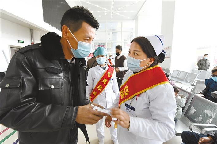 圖為拉薩市人民醫(yī)院醫(yī)護人員為前來就診的患者服務