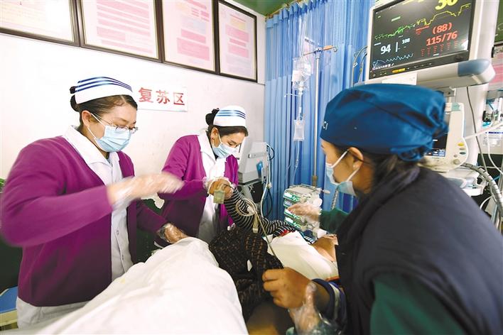 圖為自治區(qū)人民醫(yī)院護理部護士查看病人情況