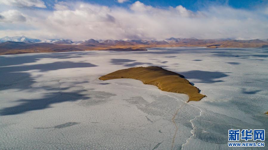 這是3月6日拍攝的普莫雍錯(cuò)湖心島(無人機(jī)照片)。新華社記者 孫非 攝