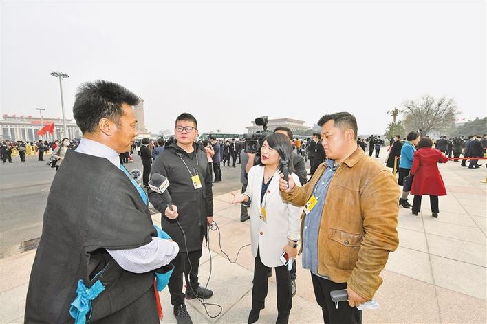 圖為全國人大代表米瑪國吉接受媒體采訪。記者 旦增西旦 攝