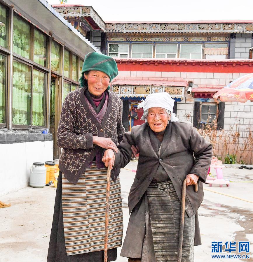 卓嘎老人在院子里散步(3月22日攝)。新華社記者 晉美多吉 攝